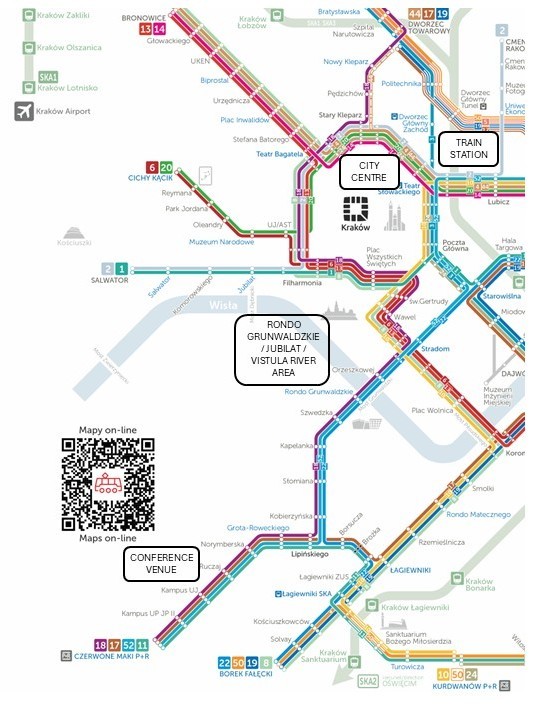 Most hotels are located within or near the city centre, offering easy access by tram or bus to the conference venue (Kampus UJ).
